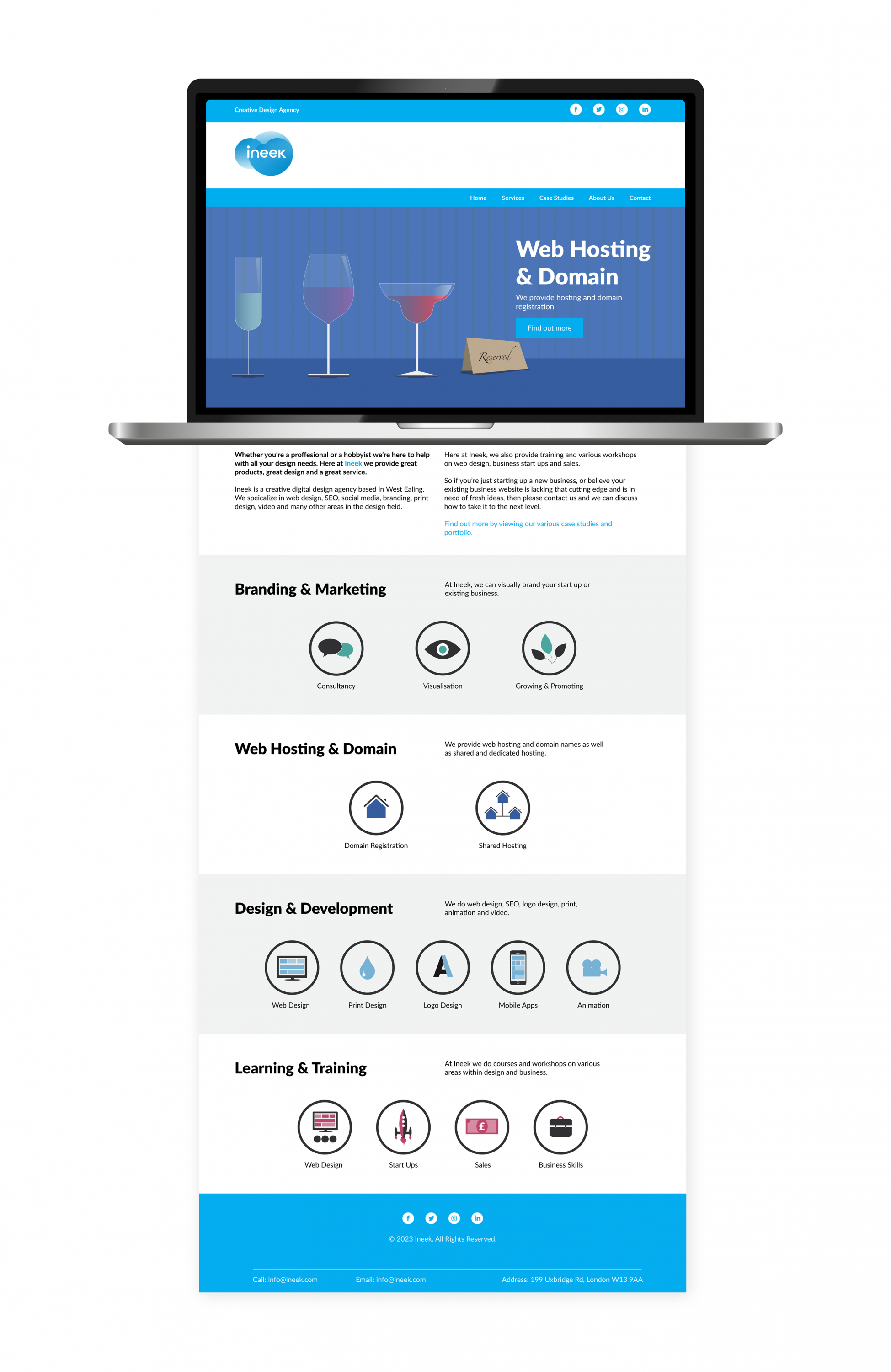 We produced a website which conveyed the Ineek branding that our client was very happy with. We designed a number of illustrative banners and icons that were taken on as extra assets and used in further marketing material by the company.