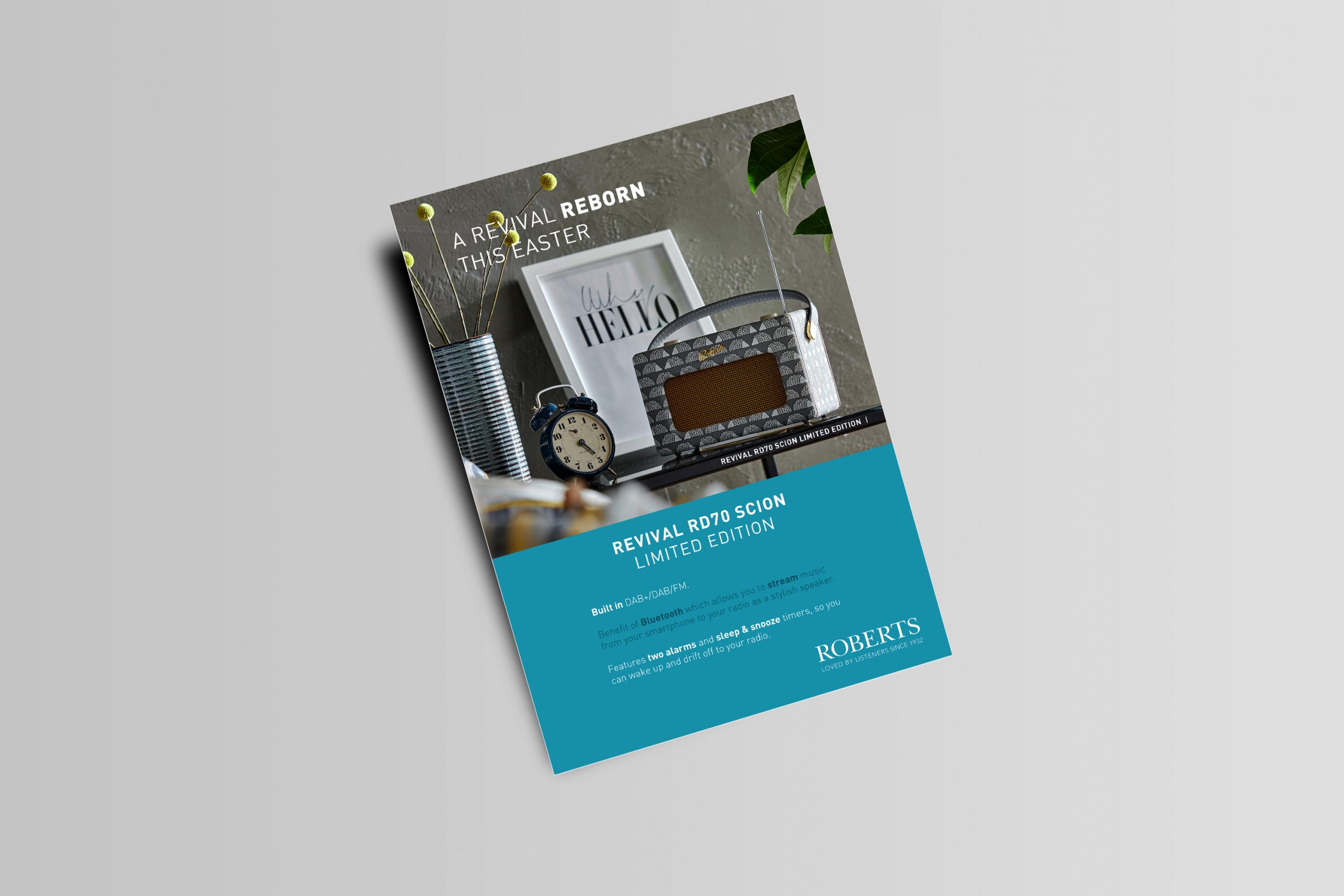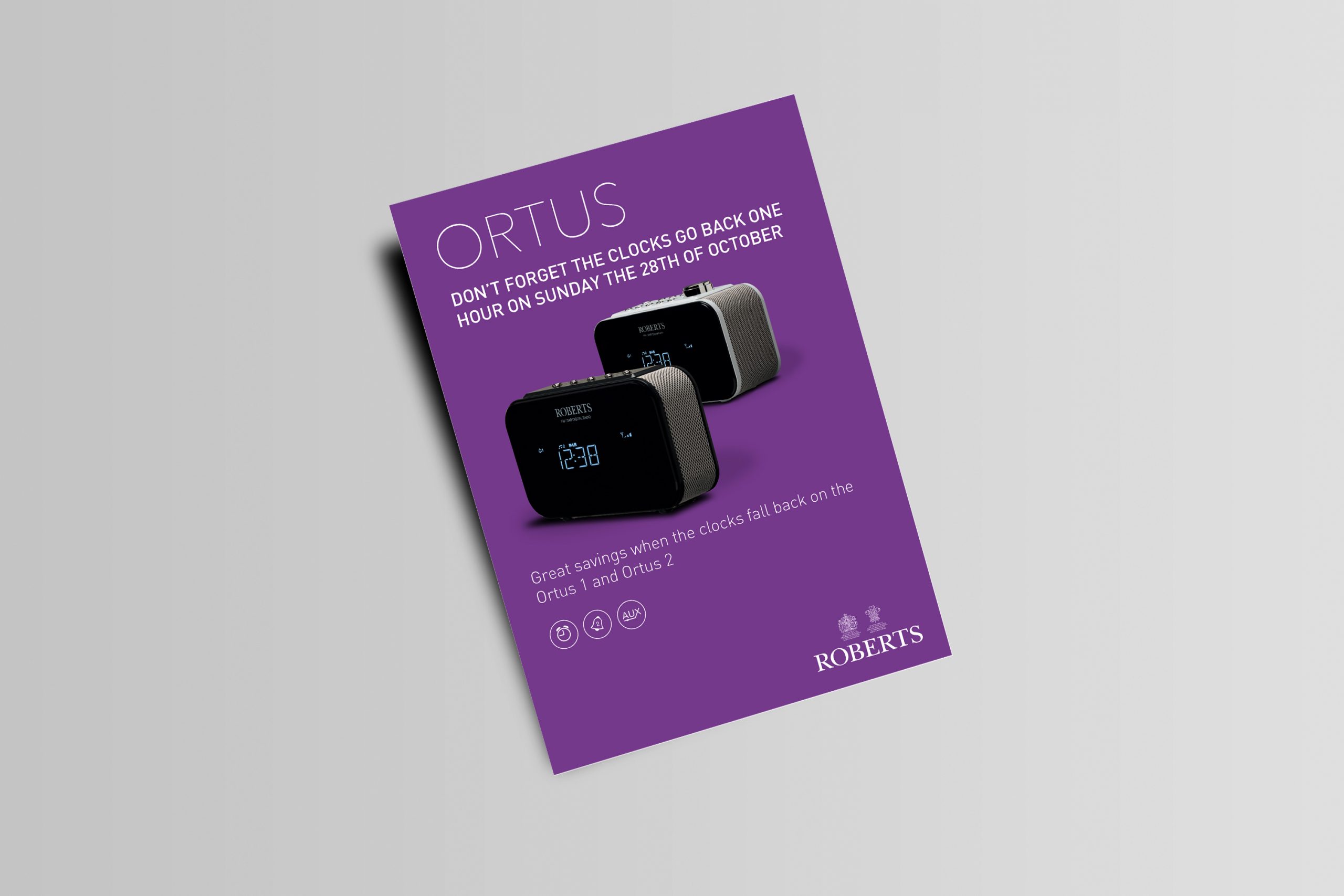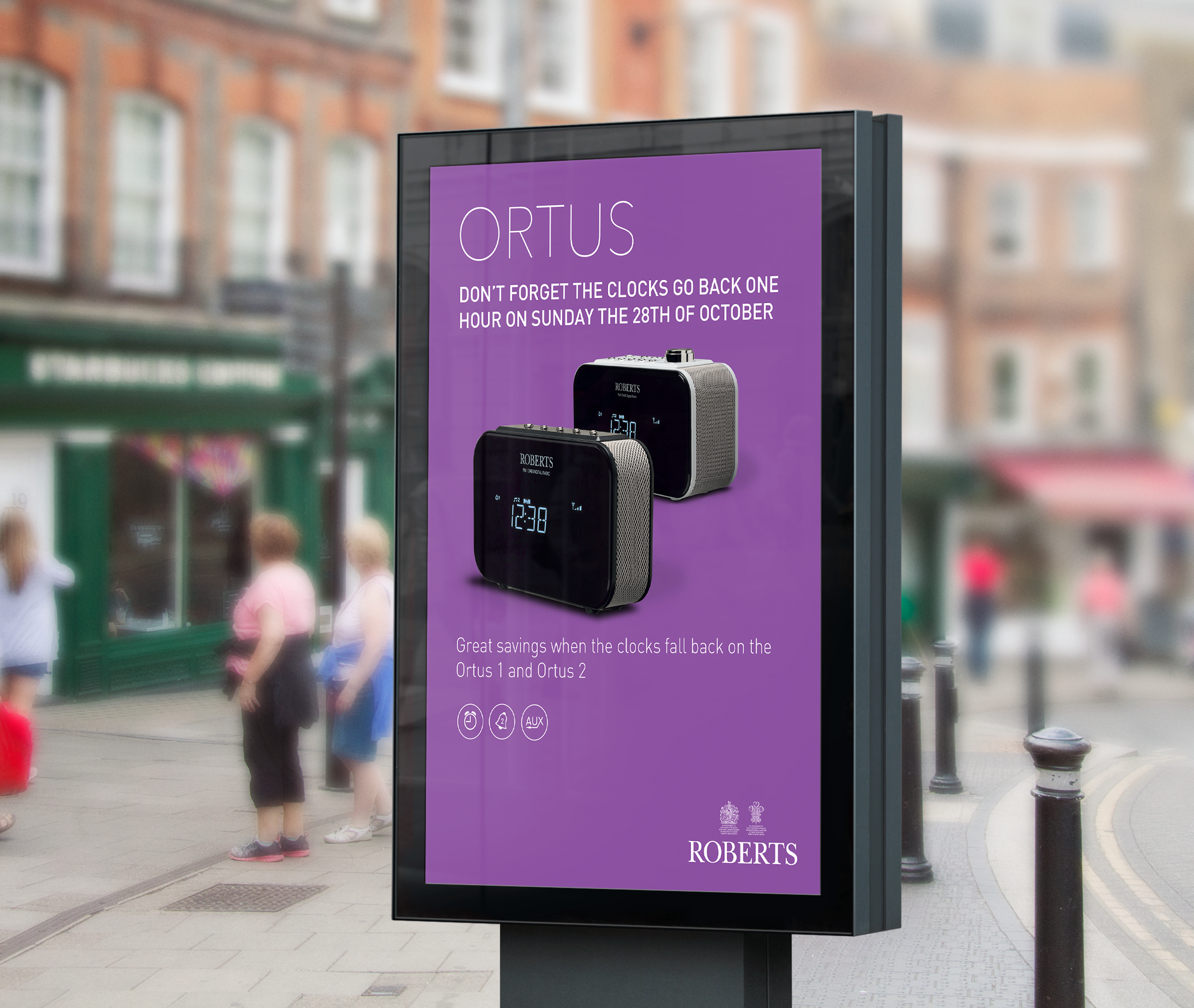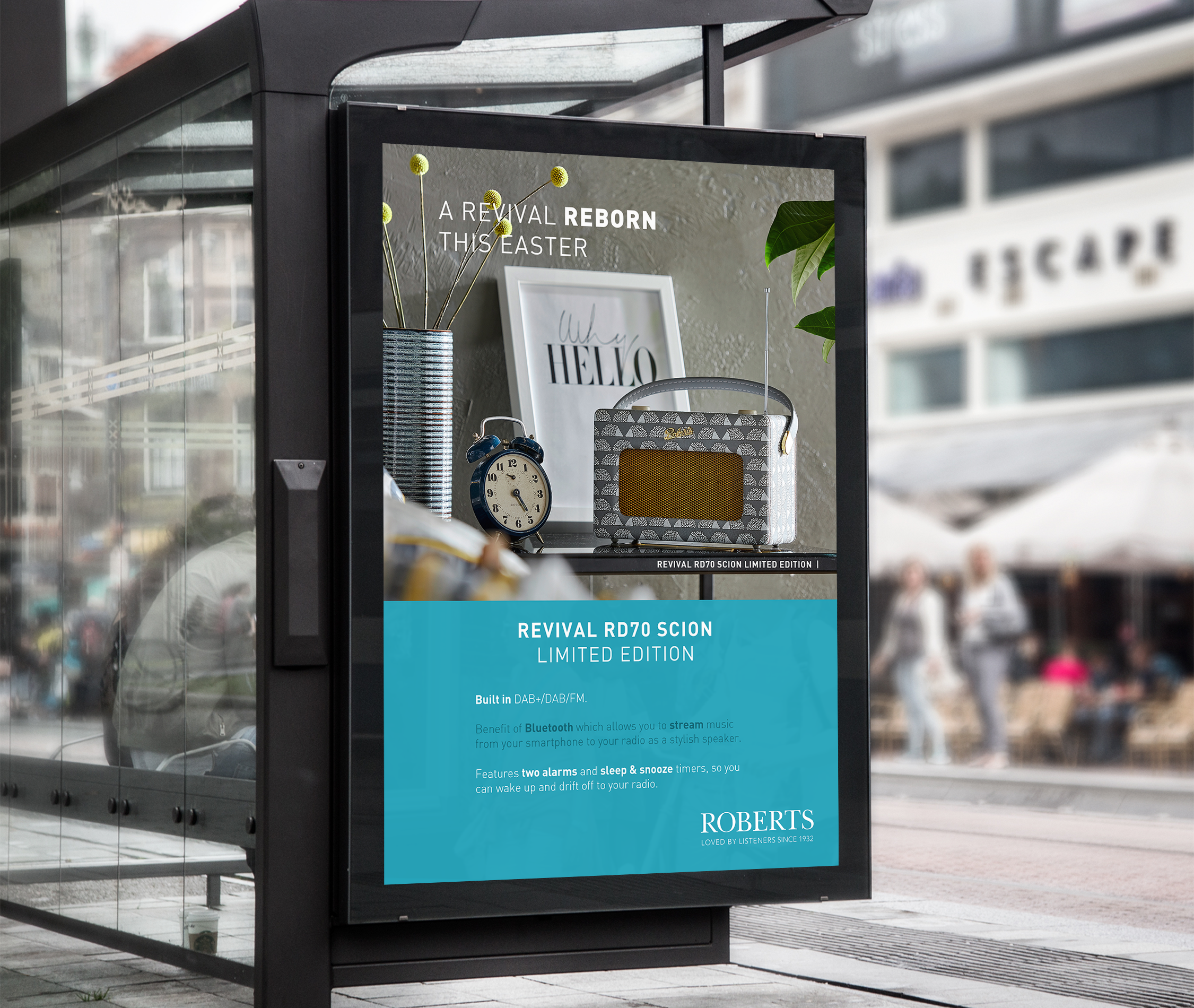 We applied the traditional Roberts Radio branding combined with their high quality photography, and put together sleek posters and billboard designs.