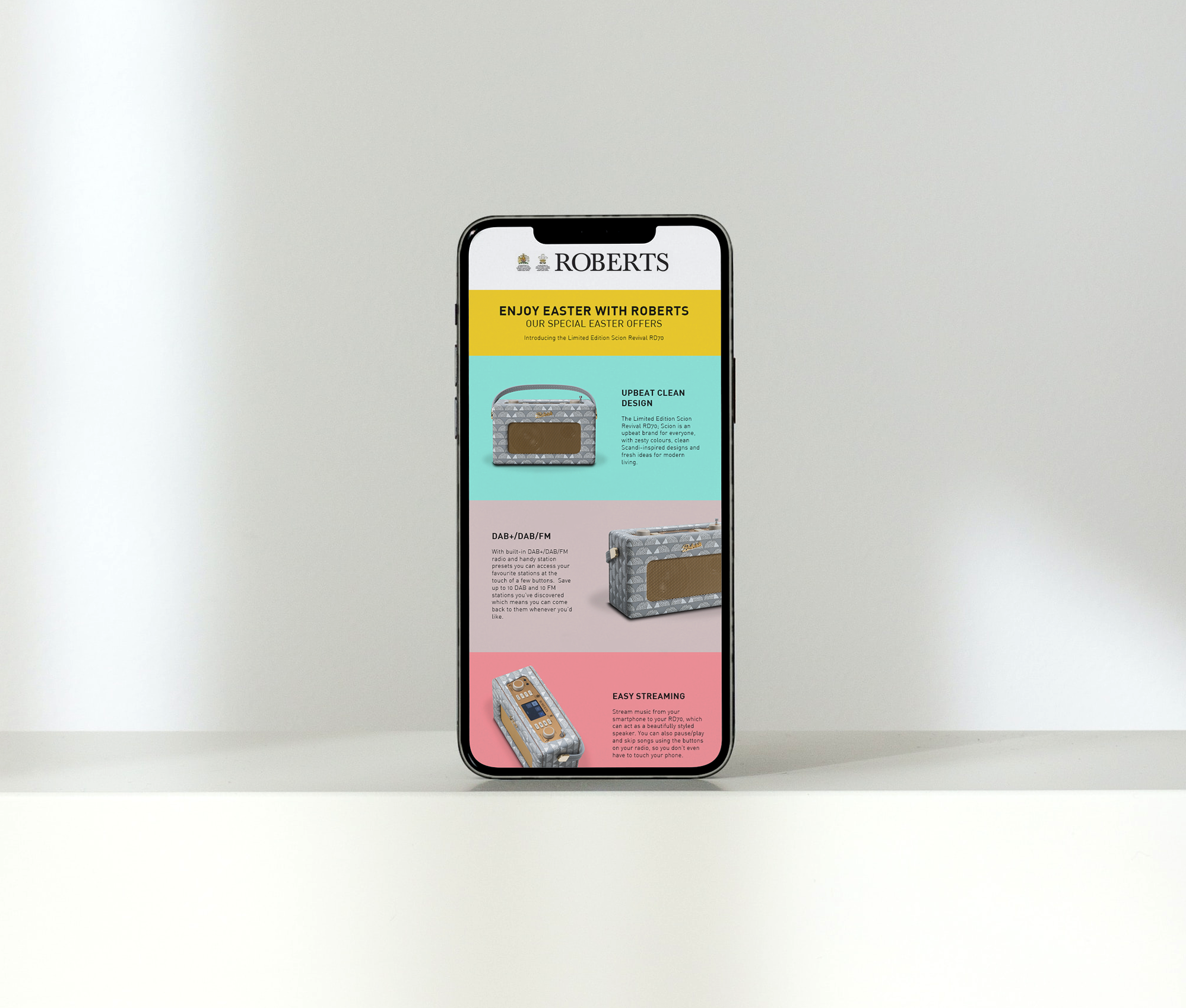 Roberts Radio required marketing collateral to promote various lines of their new products in the form of billboards and emailers.