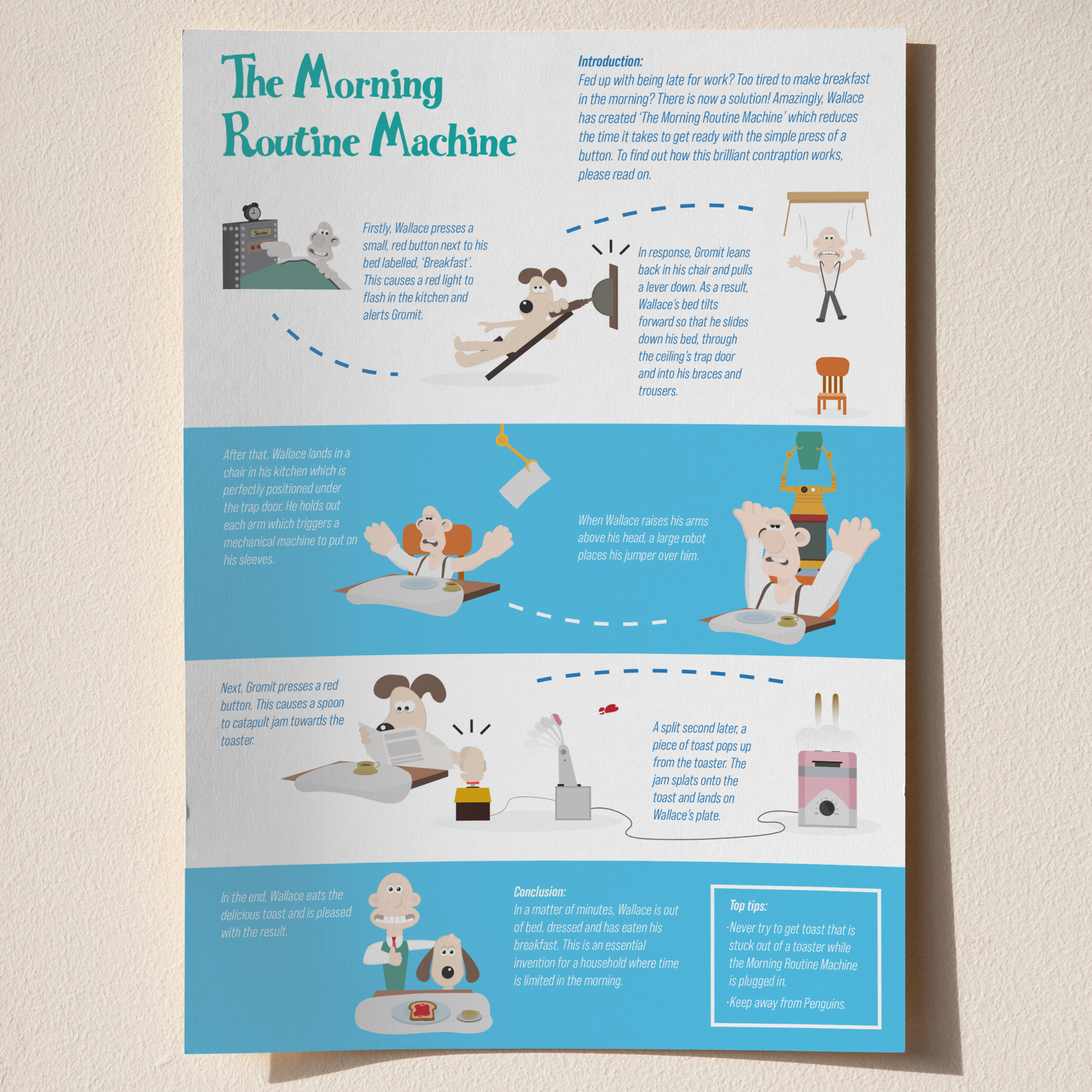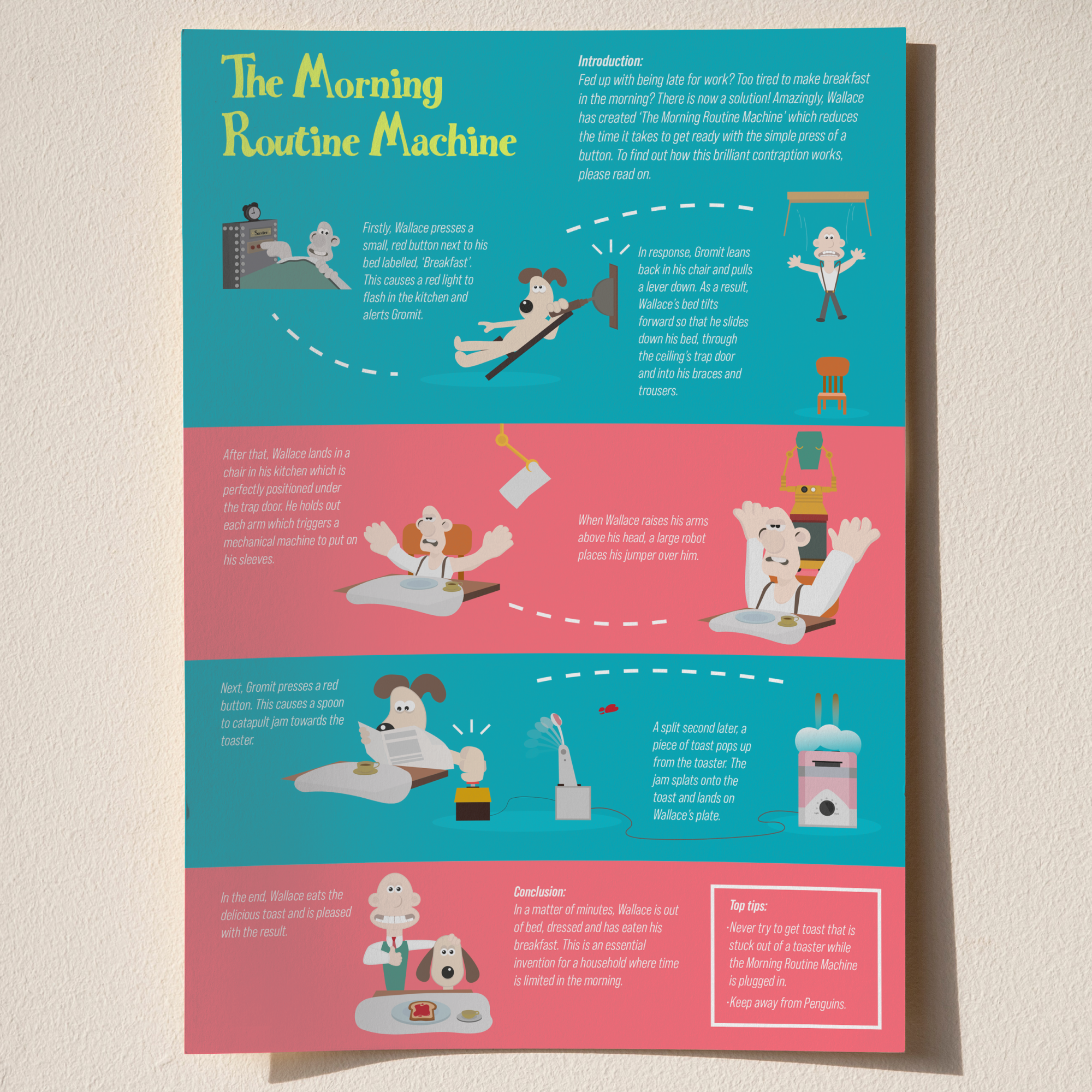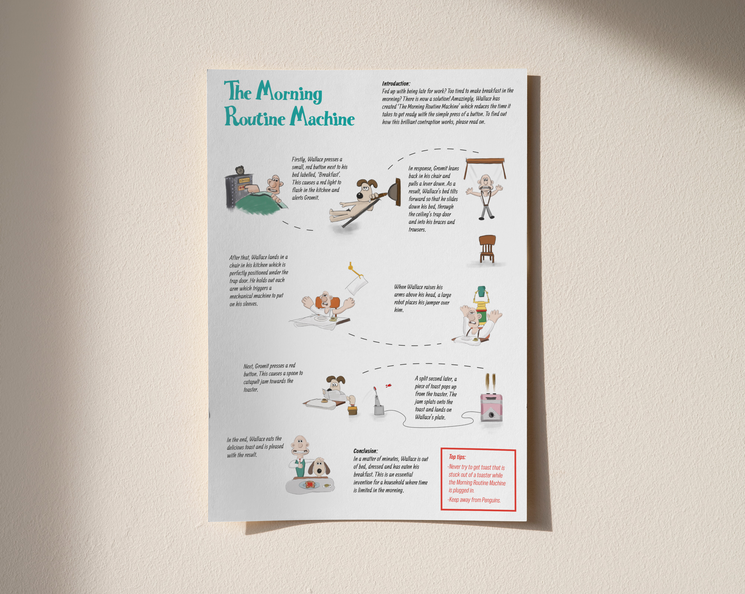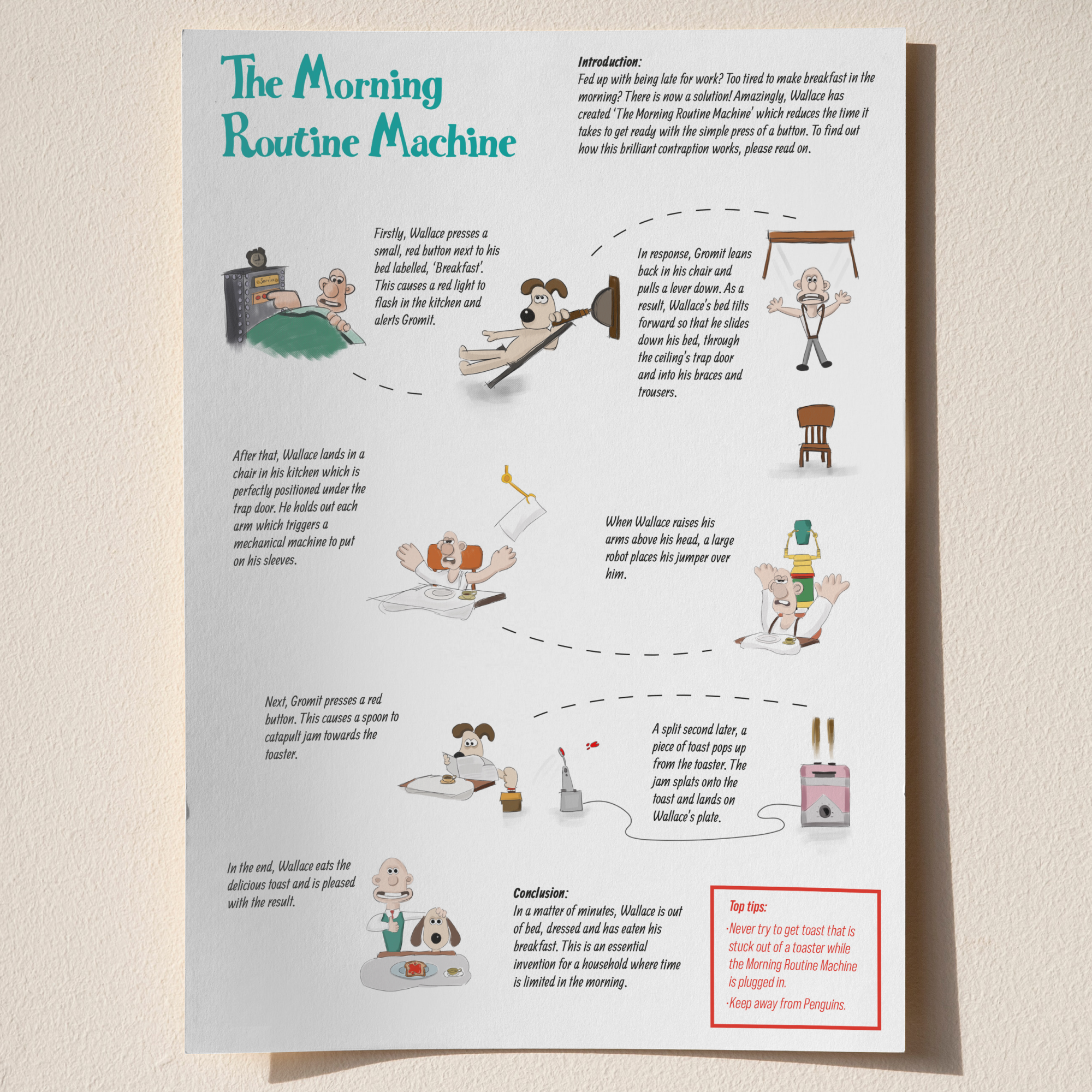 We were inspired to create artwork that was related to Wallace and Gromit along with a narrative that was tied closely to the original animation. With the theme of invention we developed stories behind each of the assets.